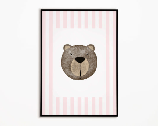 This delightful collection of striped children's prints brings a playful and whimsical touch to any space. Featuring candy stripes in pastel colours, each design is adorned with hand illustrated drawings like spring flowers, sunny sunshines, and an adorable bear. Our stripy kids' prints are perfect for brightening up a nursery, bedroom, or playroom, creating an atmosphere filled with warmth and imagination. Whether you're looking for a pop of colour, a fun theme, or a touch of nature, these prints are sure to spark smiles and bring a sense of fun to every corner.