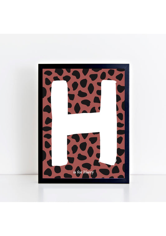 Dalmatian Spot Initial Print - brick/black background