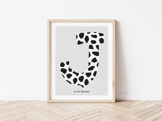 Dalmatian Spot Initial Print - grey background