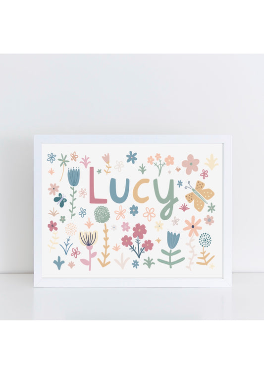 Personalised Spring Flowers Name Print