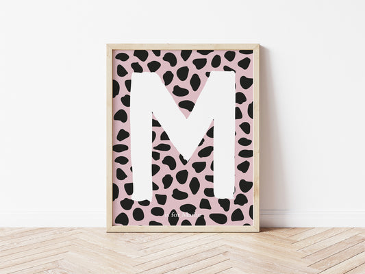 Dalmatian Spot Initial Print - dusky pink and black
