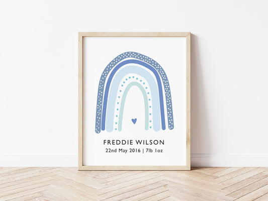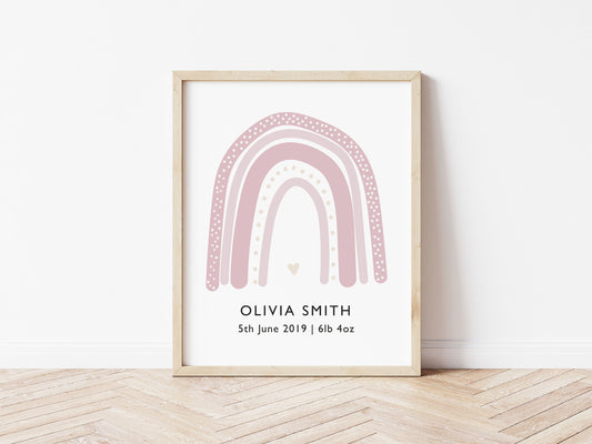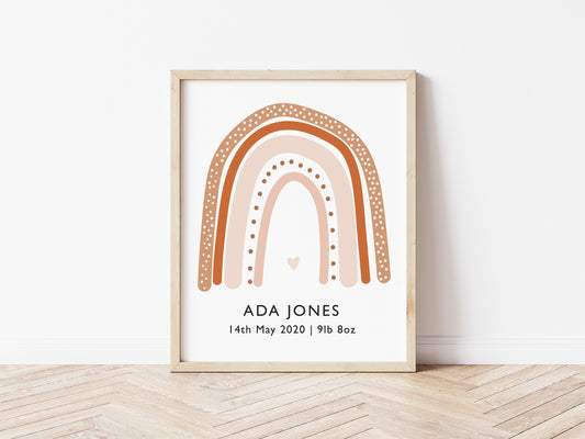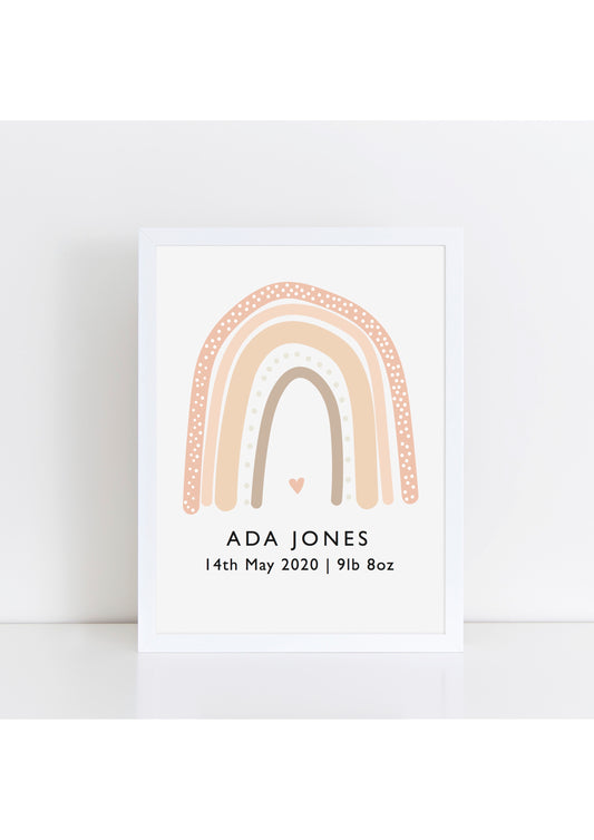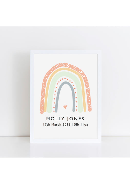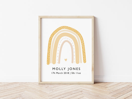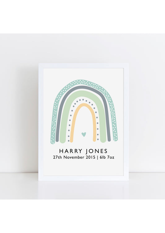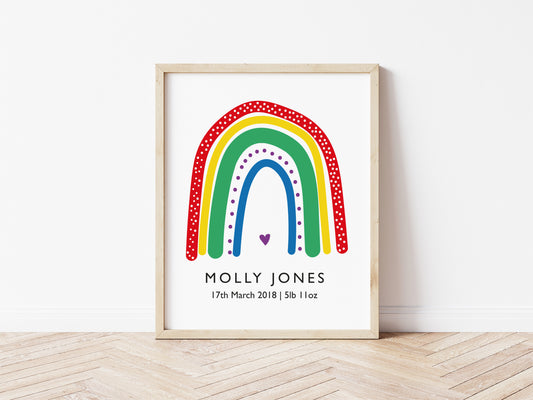 Rainbow prints - A huge selection of beautiful rainbows in a wide range of colours. These designs make a wonderful new baby gift, particularly the personalised birth details rainbow print.