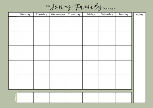 Weekly Family Planner in Sage - personalised