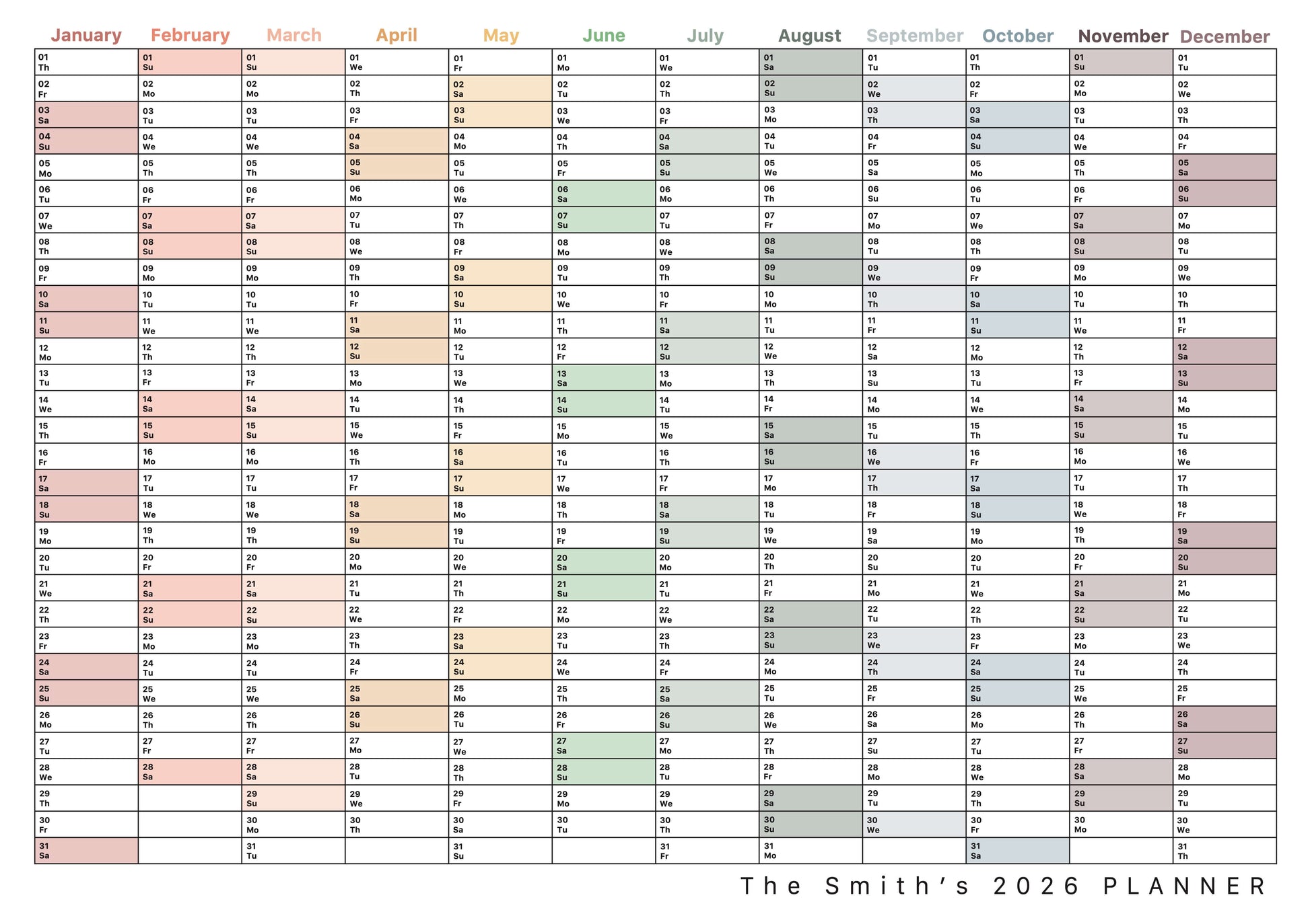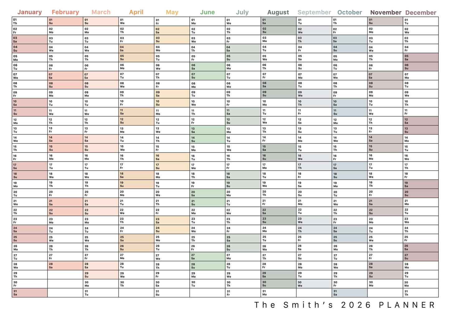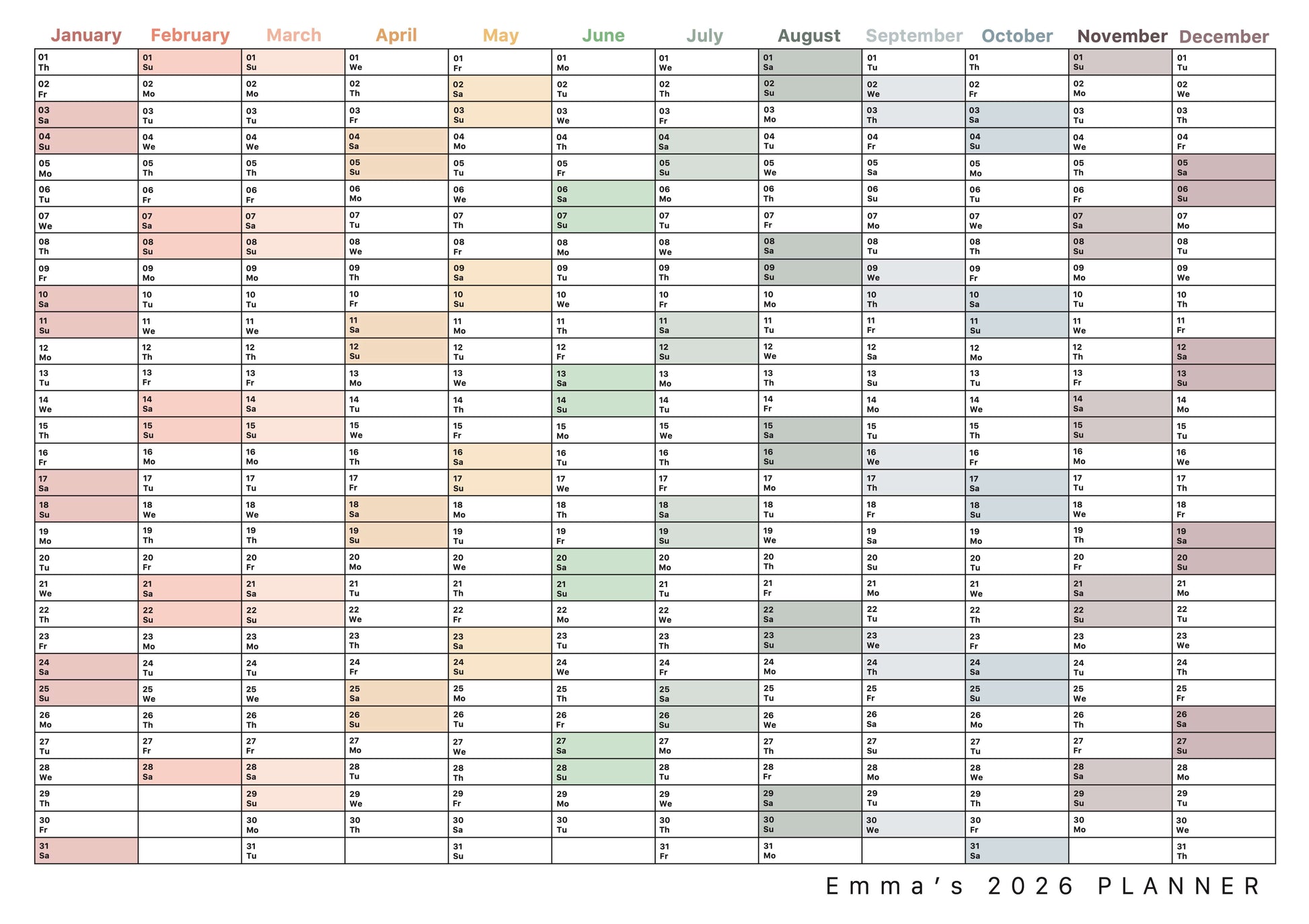 • Year-at-a-Glance Layout: See all 12 months at once—perfect for long-term planning, holiday prep and project timelines.