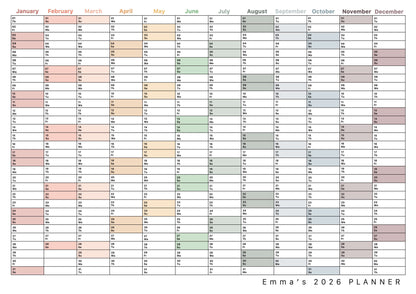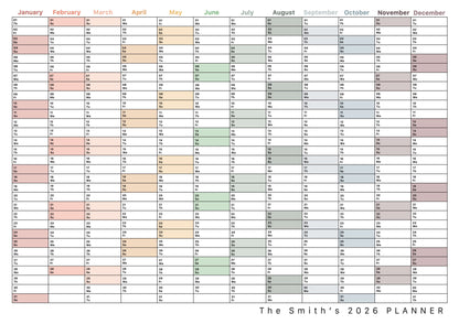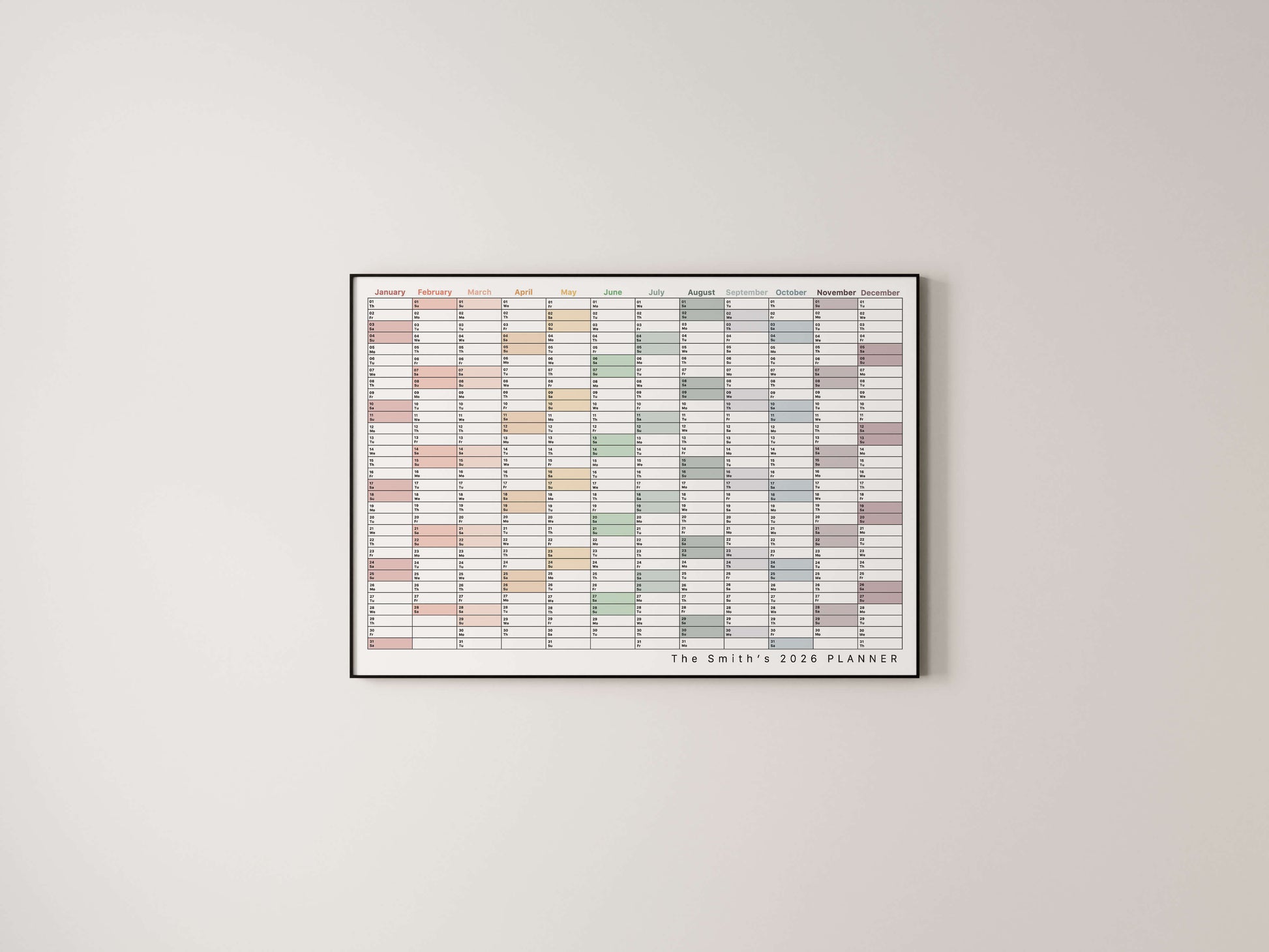 Stay organised all year with our beautifully designed Personalised 2026 Wall Planner in landscape. Perfect for families or students to plan their year ahead, or home offices, studios, and shared workspaces, this planner helps you see the year at a glance without overwhelming your space.