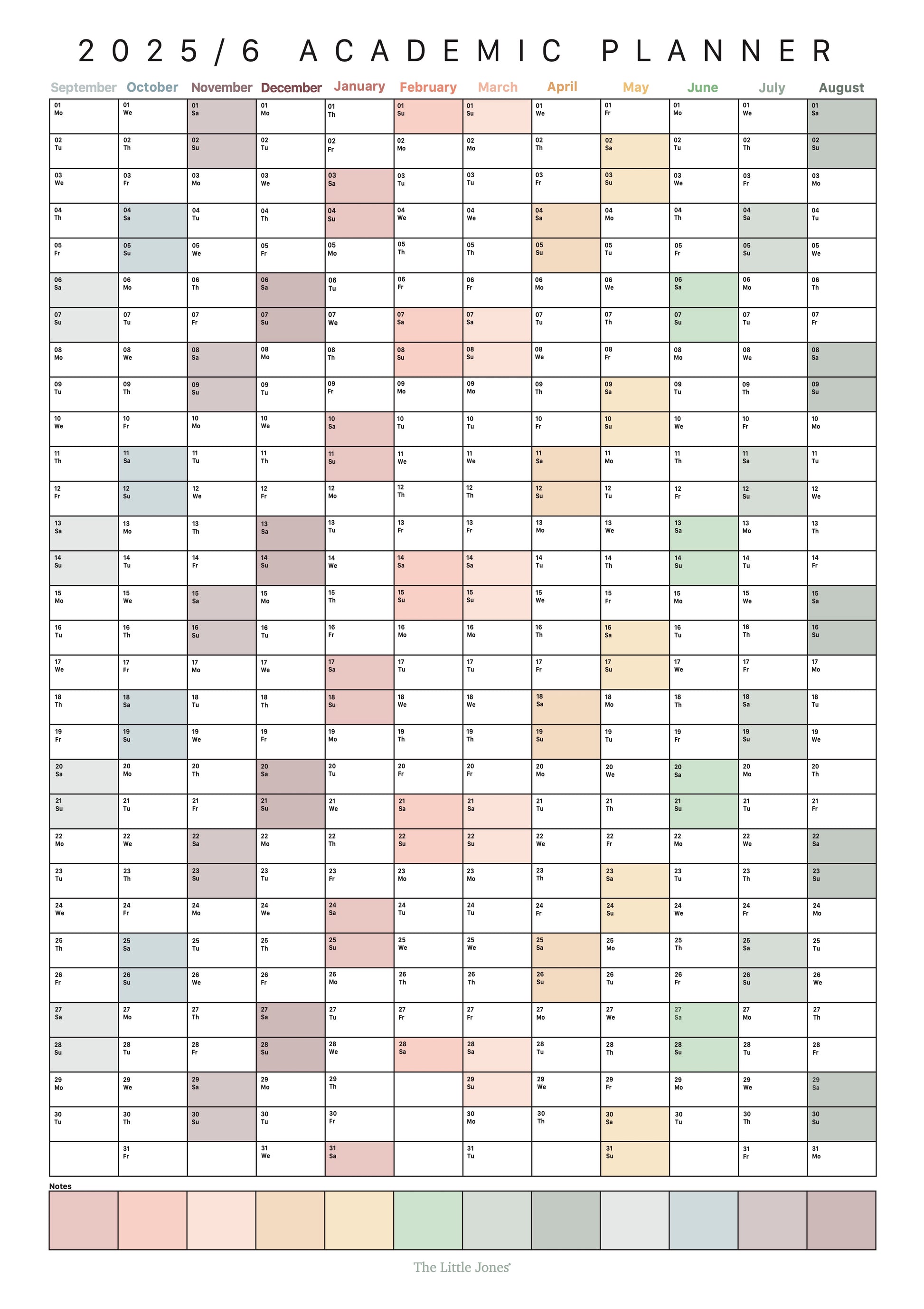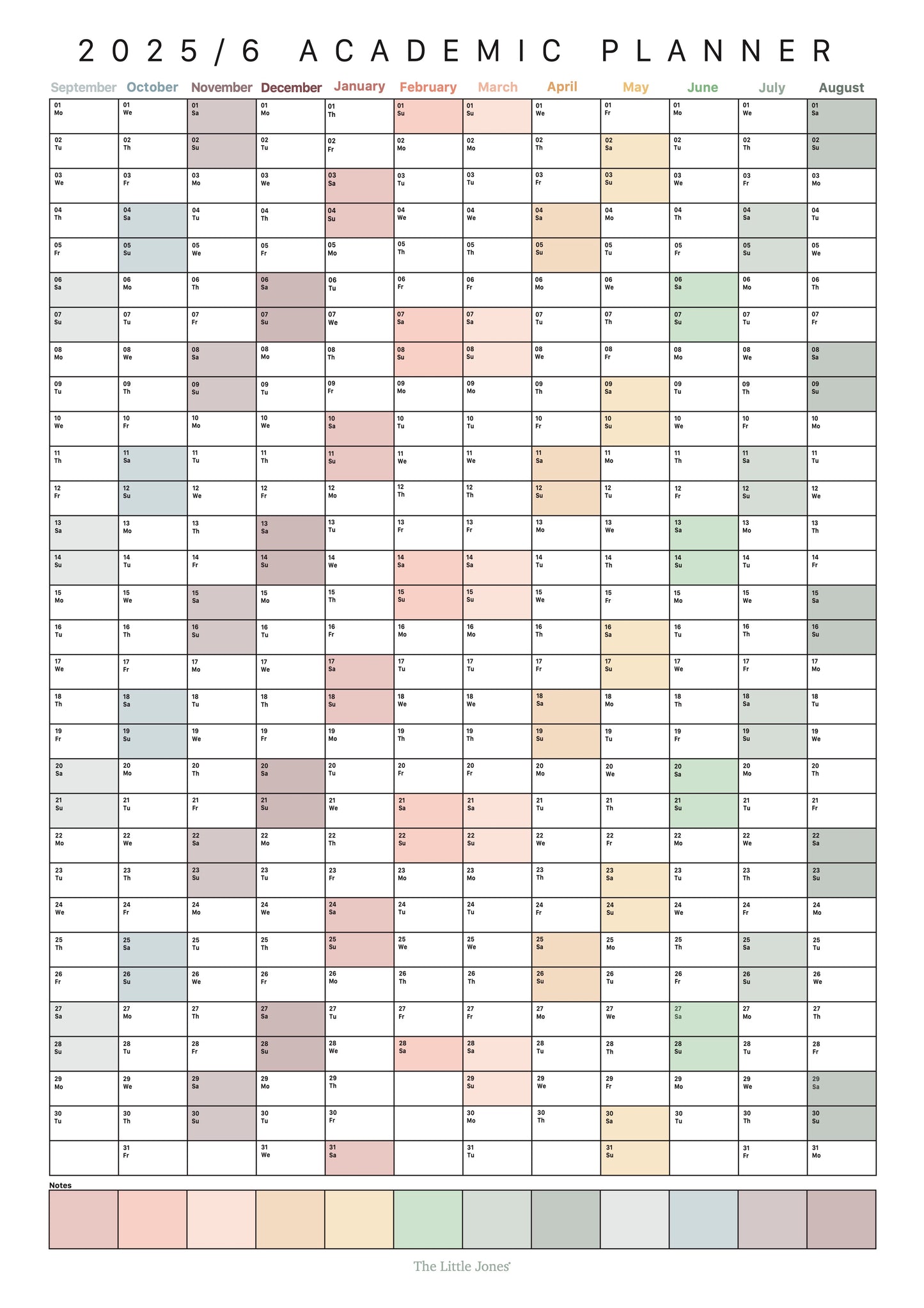 Easily plan your 2025/2026 academic year with our wall planner which runs from September 2025 to August 2026.