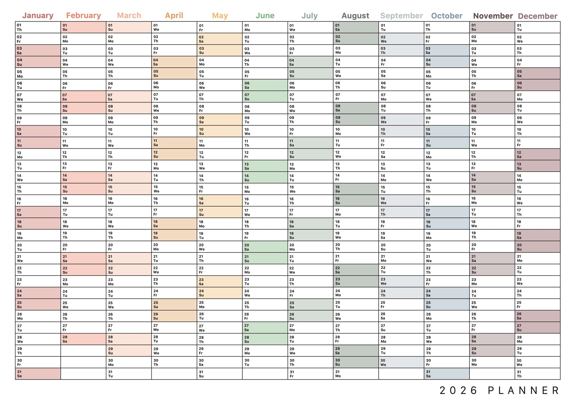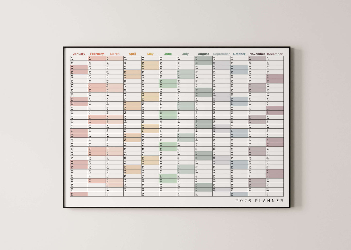 2026 Wall Planner in landscape orientation.