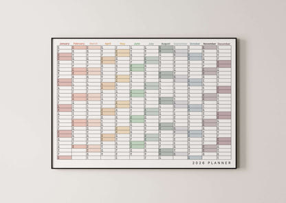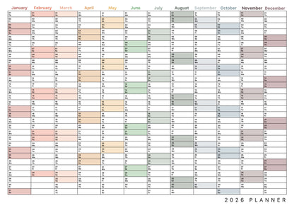 It's super easy to stay organised all year with our beautifully designed, landscape 2026 Wall Planner, featuring a clean layout and subtle, colour coding for each month. Perfect for families to plan their year ahead, or home offices, studios, and shared workspaces. This design is also available in portrait.