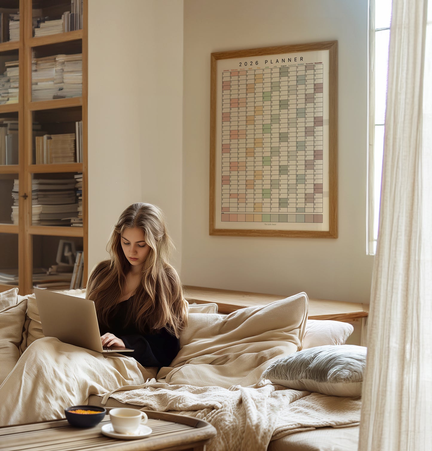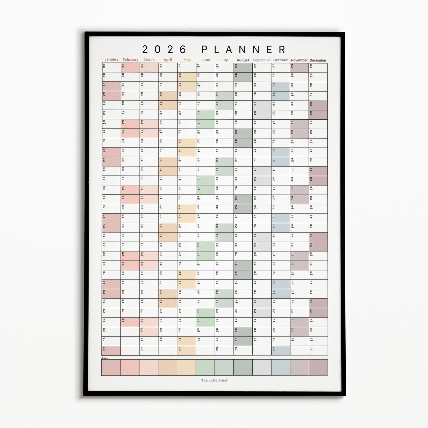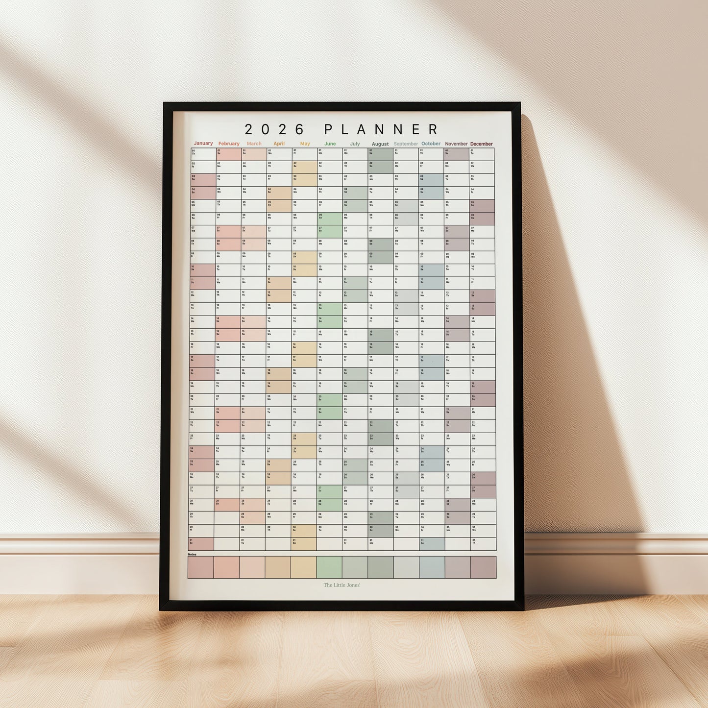 It's super easy to stay organised all year with our beautifully designed, modern 2026 Wall Planner, featuring a clean layout and subtle, colour coding for each month. Perfect for families to plan their year ahead, or home offices, studios, and shared workspaces.