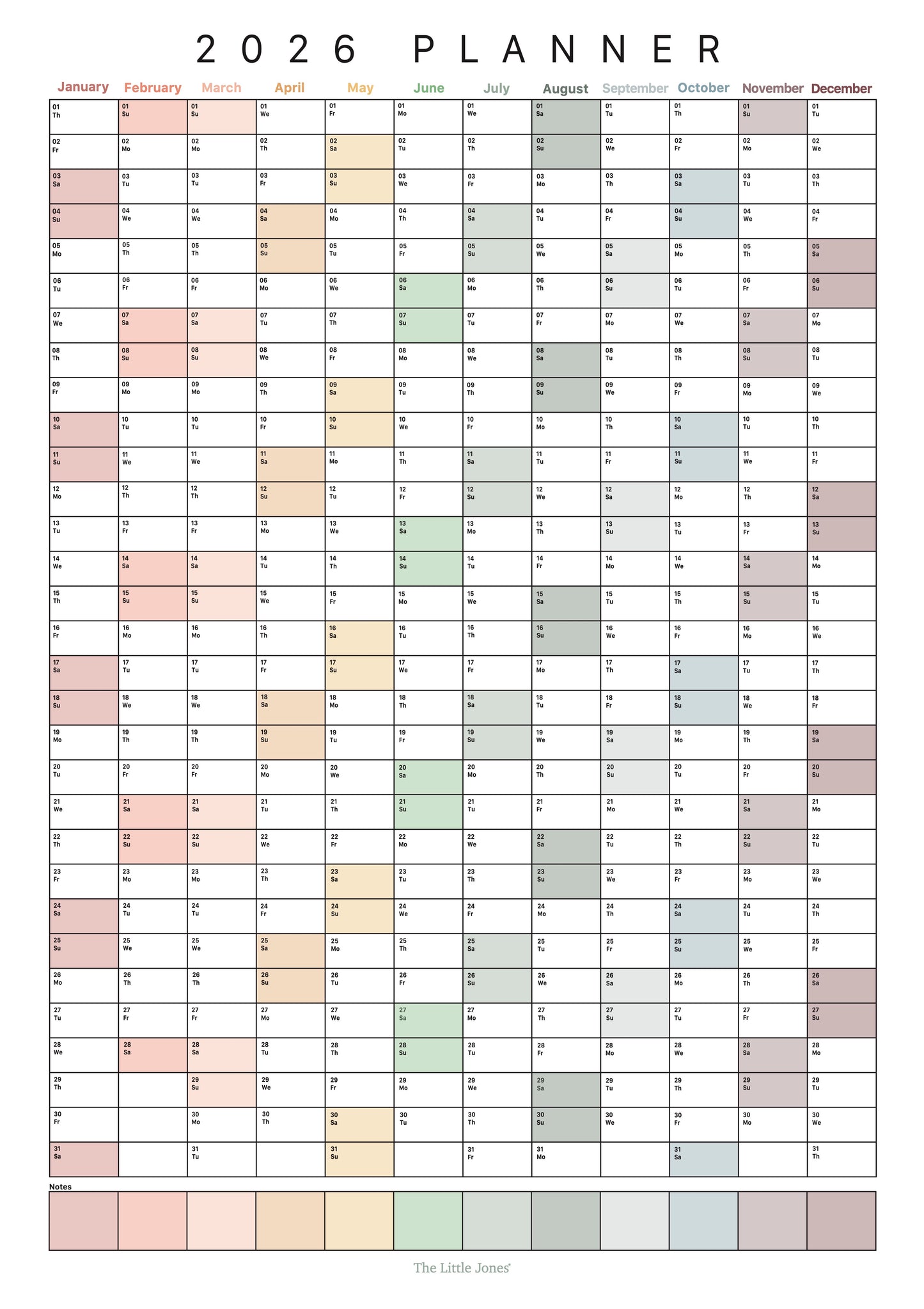 Easily plan your year ahead and remember birthdays, anniversaries, and other important dates with our cute 2026 wall planners!