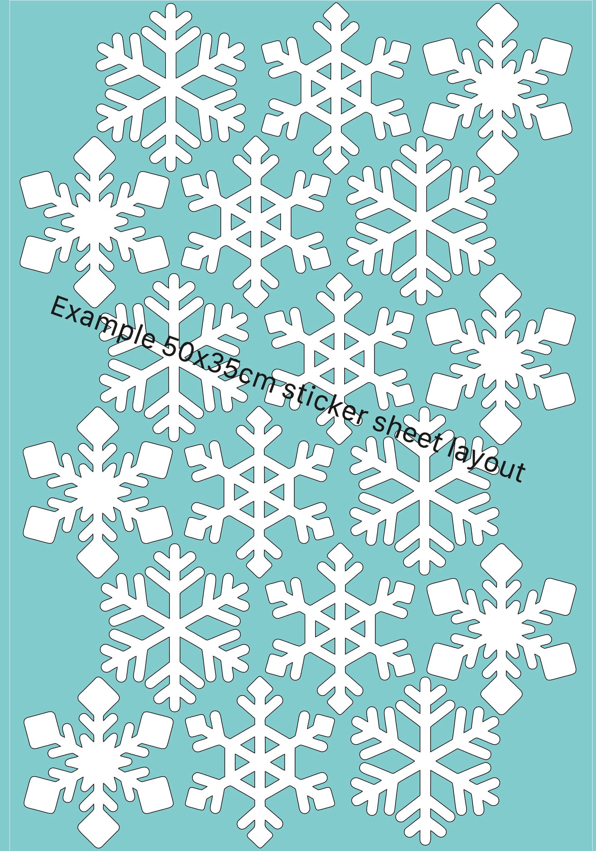 - Our snowflake wall stickers come in 50x35cm sized sheets.